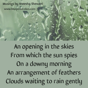 It all starts with a vision – be it a venture, a painted artwork, a sheaf of writing – and many a times across time and space they converge. A delayed monsoon made me crave the soul nourishment of the rains and I rummaged through some of my micro-verses looking for succour. I came across two previously written poems to feature on my blog.