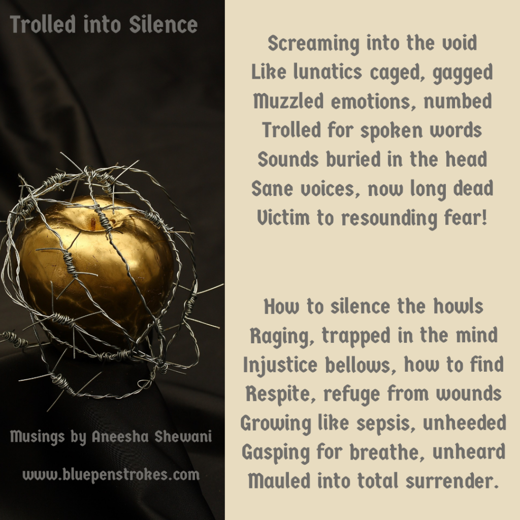 Needless to say, even these people must be relieved to have me exit from the group because now no one could challenge their point of view. We all love to believe we are right and our ideology is the best. Fair enough, but then why troll and abuse diverse ideologies. At that point in time, I wrote Trolled into Silence.